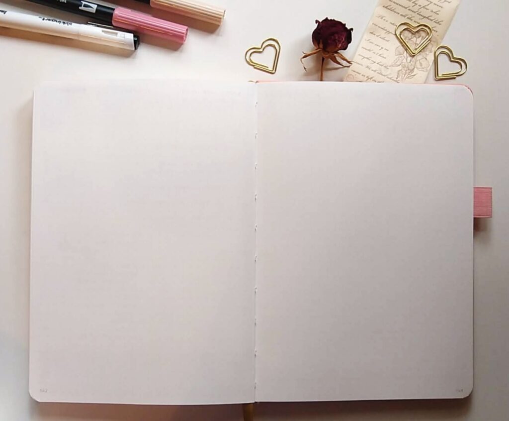 Follow along as I create a simple spread to plan for the next hectic week of our lives. All you need is a notebook, a pen, and optional markers or highlighters. We’ll start with a blank page, as one does.